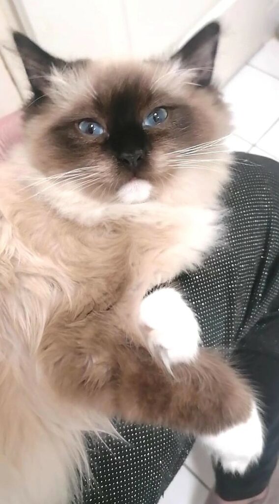 Le chat de nous caresse pas, il se caresse à nous.