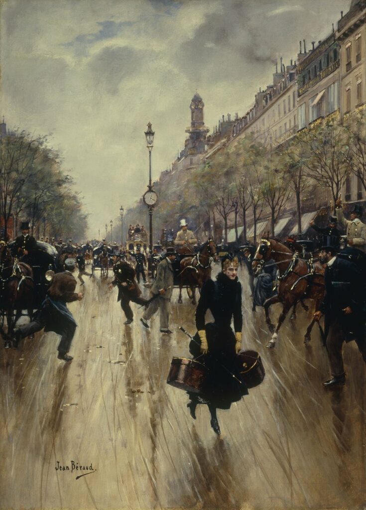 Jean Béraud (1849-1935). «Quatre heures de l’après-midi au Carrefour Drouot et sur le Grand Boulevard»